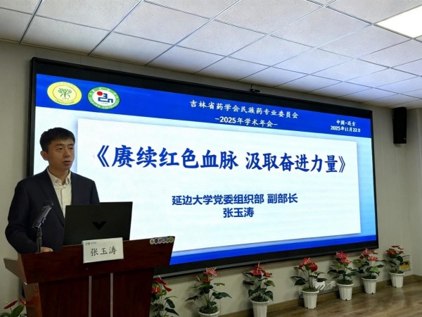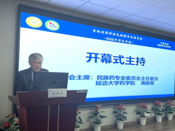11月22日,由吉林省药学会主办,吉林省药学会民族药专业委员会、延边大学药学院承办的“吉林省药学会民族药专业委员会2025年学术年会”在延边大学举办。会议以“发挥民族医药优势,振兴民族药产业发展”为主题,包括开幕式、民族药专业委员会全体委员工作会议、功能型党小组活动及学术年会四个阶段。吉林省药学会民族药专业委员会委员,相关单位药学工作者及高校师生200余人参加会议。吉林省药学会民族药专业委员会主任委员、延边大学药学院南极星教授主持开幕式。