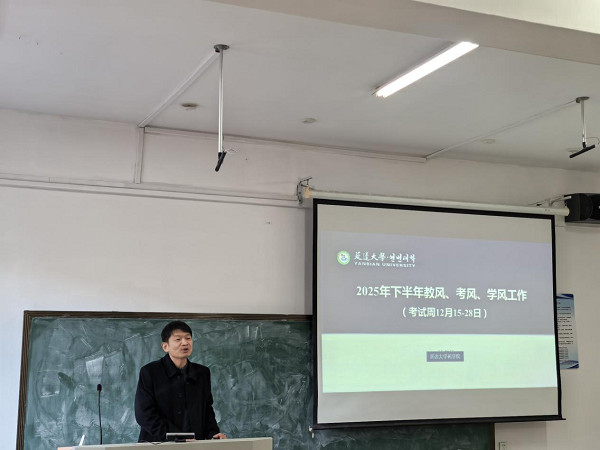 修景会传达了学校“教风、学风、考风联动工作部署会”上杜锐书记的讲话精神,并对全院教师和学生工作人员分别提出工作要求。一是任课教师要提高命题质量,并做好保密工作,推动学院教学质量提升;二是全体教师要严格按照相关规定做好各类考试的监考工作,履职尽责,确保考试的公平公正;三是全体学生工作人员要深入学生中,做好教育和心理疏导工作,让诚信考试入脑入心。