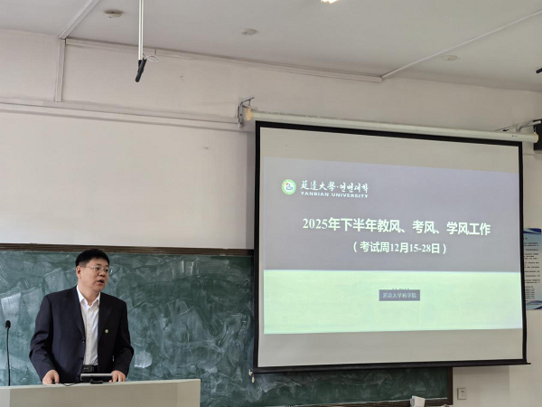 12月8日下午,延边大学药学院召开教风、学风、考风联动工作部署会。学院党委书记修景会、院长朴光春、副书记赵成日、副院长孙金凤,以及全体教师参加会议。会议由孙金凤主持。