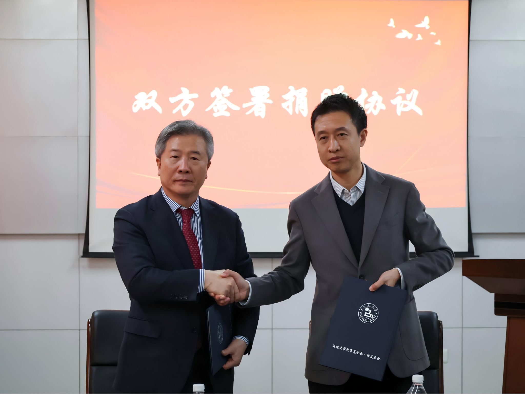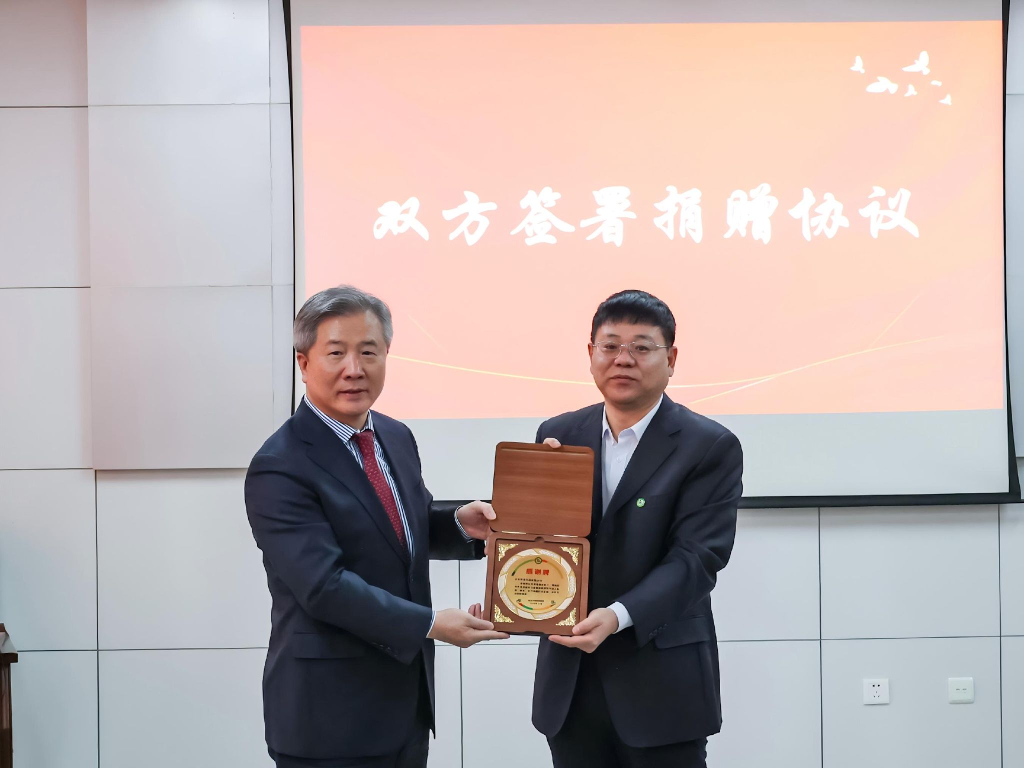 捐赠仪式上,李彦生与任海龙共同签署捐赠协议,并完成基金捐赠。修景会代表学校向任海龙赠送感谢牌。
