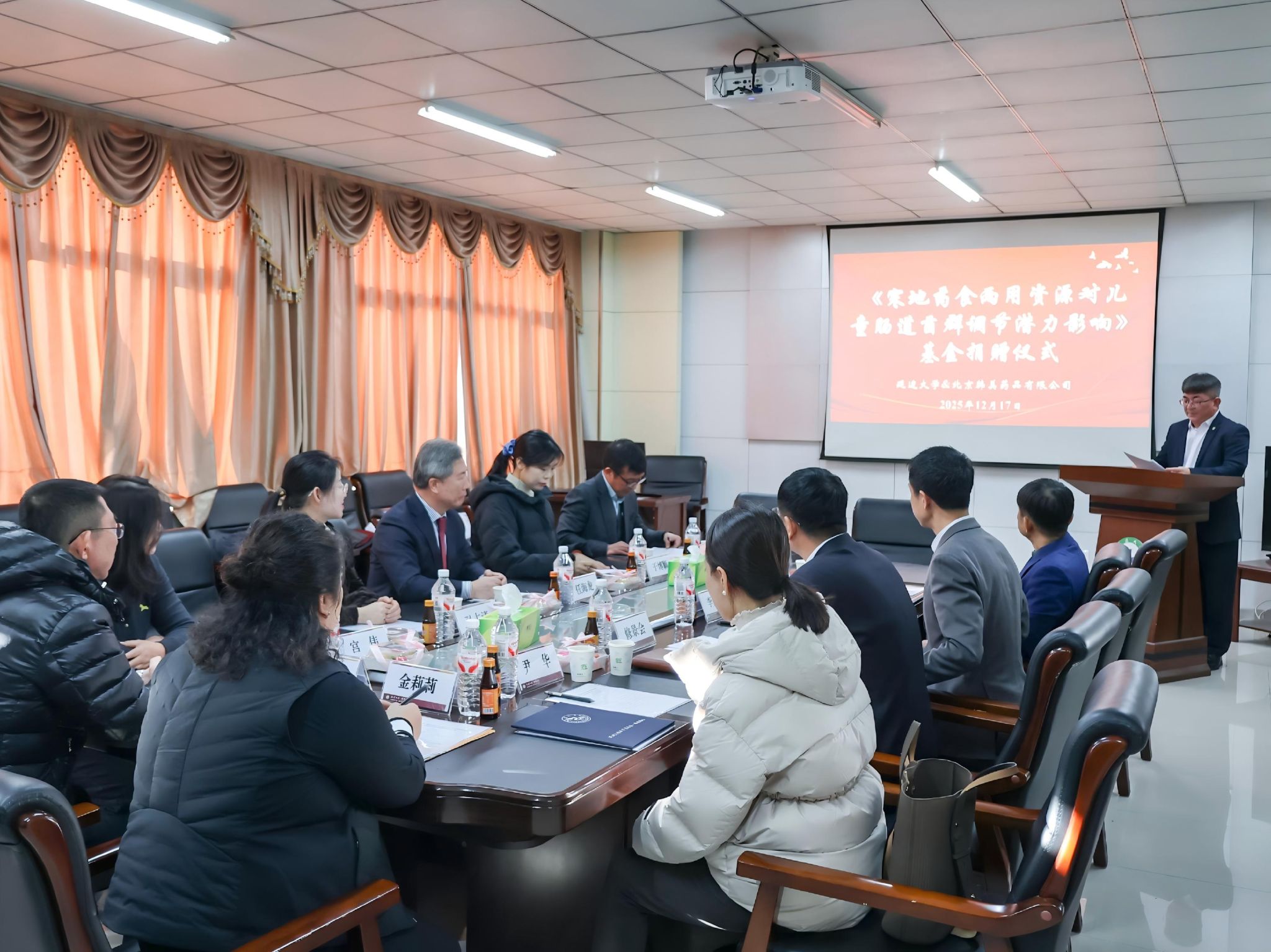 12月17日,延边大学“寒地药食两用资源对儿童肠道菌群调节潜力影响”基金捐赠仪式在药学院举行。北京韩美药品有限公司总经理任海龙、总监王宏宙、秘书于博颖、经理孙占清、经理宫伟,延边大学教育基金会·校友总会办公室李彦生主任、药学院党委书记修景会、院长朴光春、副院长姜国哲、专硕学科主任金莉莉,延边大学附属医院儿科主任元熙哲出席捐赠仪式,仪式由姜国哲主持。
