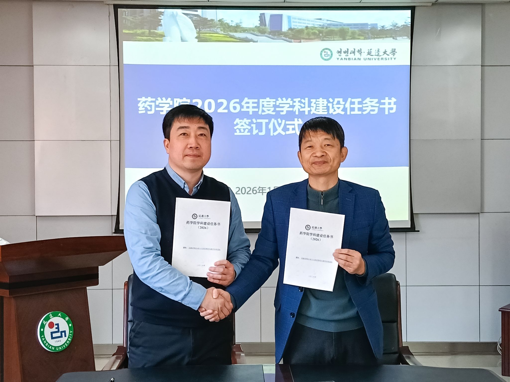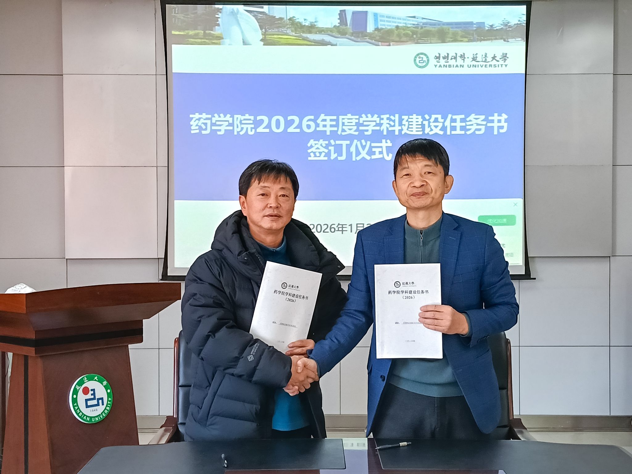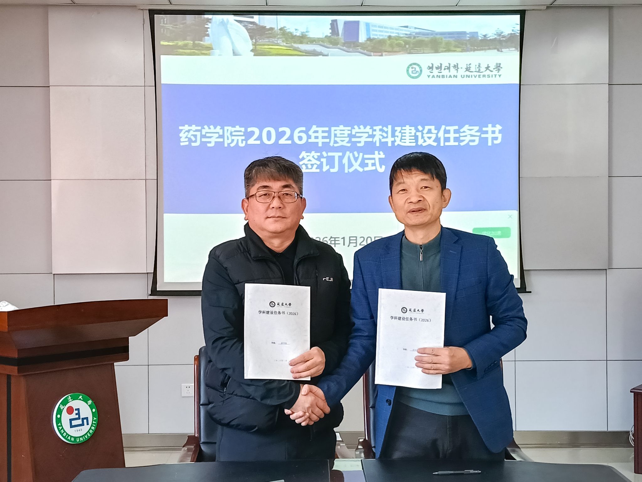 1月20日,药学院举行2026年度学科建设任务书签订仪式。药学院领导班子成员、各教学科研团队负责人参加仪式。