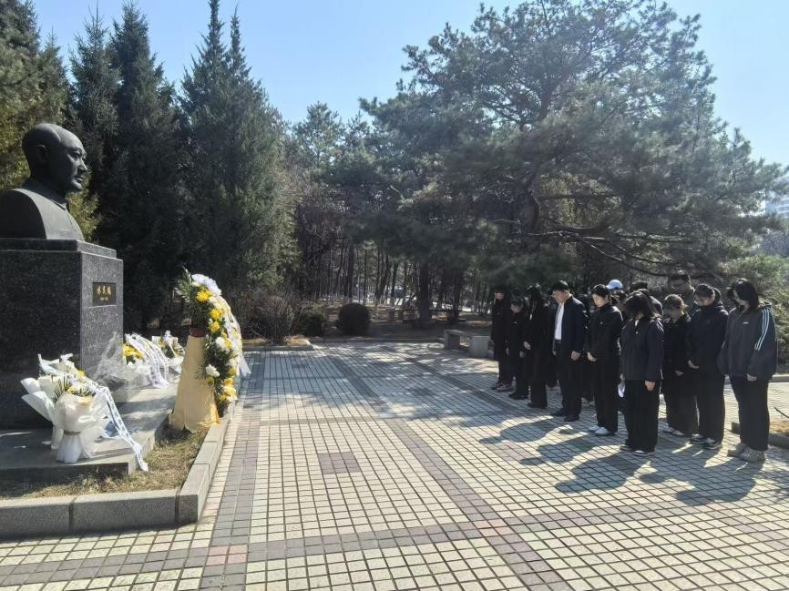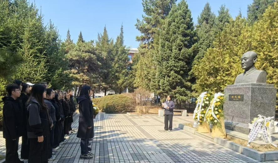 全体党员伫立碑前,聆听林民镐校长生平介绍——从他投身教育的初心,到为学校学科建设、人才培养倾注的心血,再到立德树人的师者风范。在纪念碑前,党员代表细致擦拭碑身、清理周边杂物,以朴实行动表达缅怀与敬意;随后,党员们郑重献花,朵朵鲜花承载着全体师生对党员的深切怀念。献花完毕,全体人员整齐列队,向纪念碑行三鞠躬礼,每一次躬身都饱含哀思、彰显传承决心。鞠躬礼毕,全体肃立默哀,在庄严肃穆的氛围中追思校长的办学初心与责任担当。