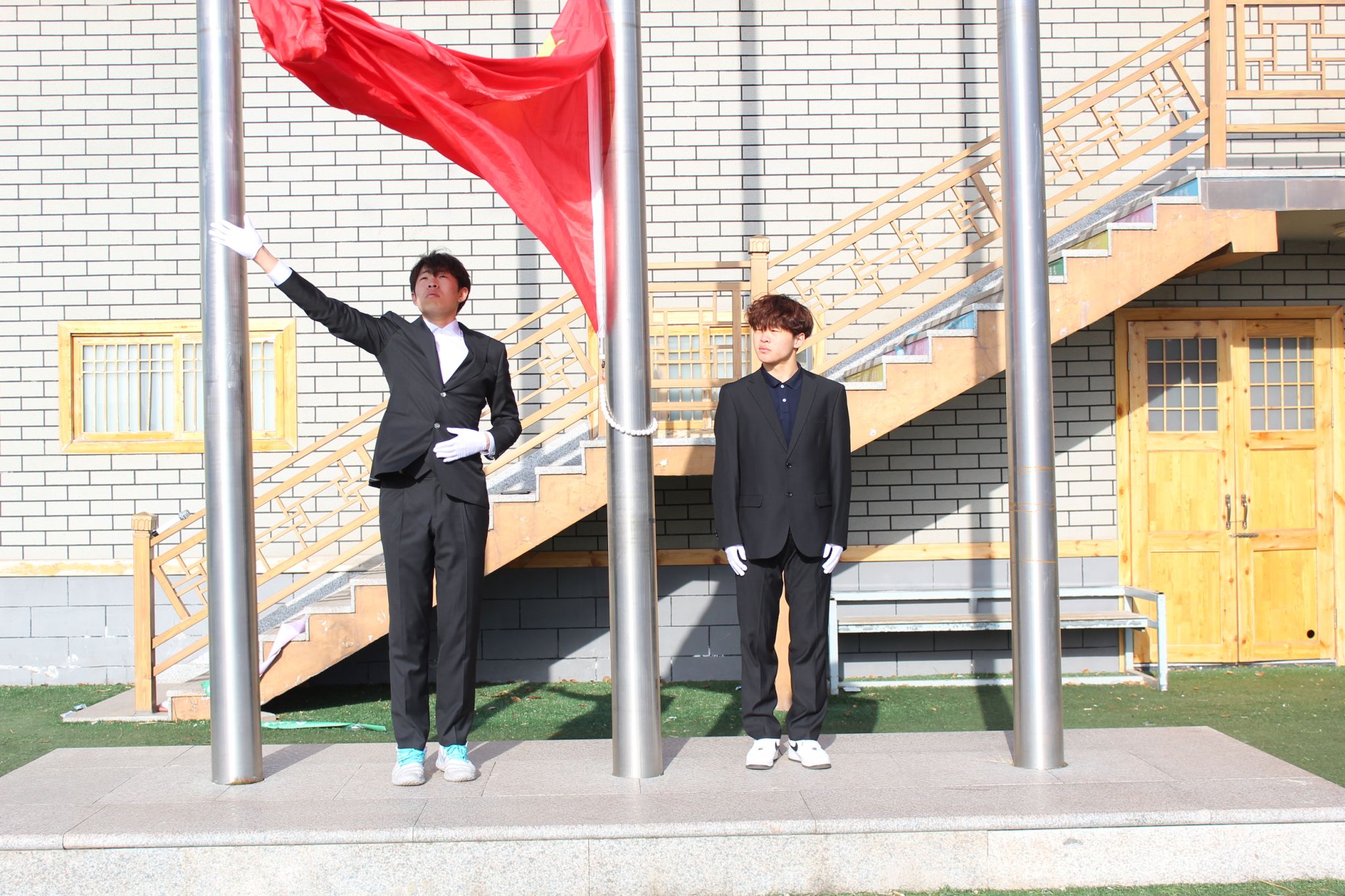 随着五星红旗冉冉升起、激昂的国歌响起,药学院全体师生齐唱国歌,行注目礼。